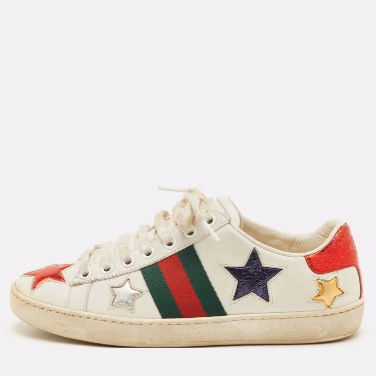 Gucci Ace Web Size 35 White Leather Star Low Top Sneakers