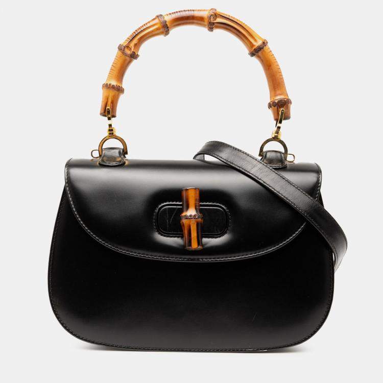 Pre Owned Gucci Black Calfskin Bamboo Night