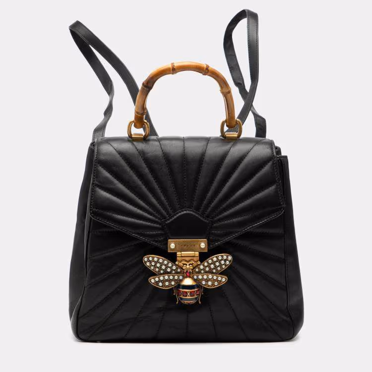 Gucci Black Calfskin Bamboo Trapuntata Queen Margaret Backpack