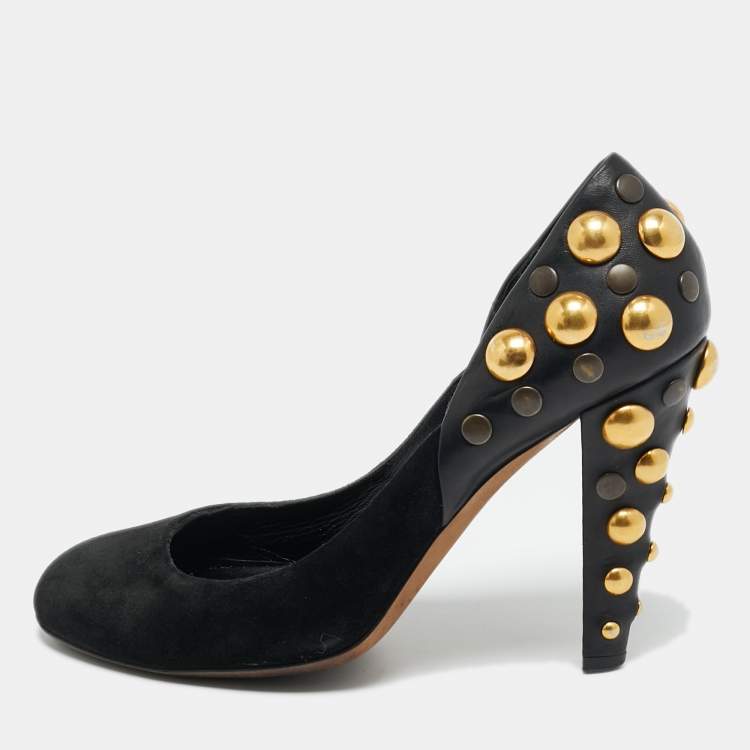Gucci Black Leather and Suede Stud Embellishment Pumps Size 37