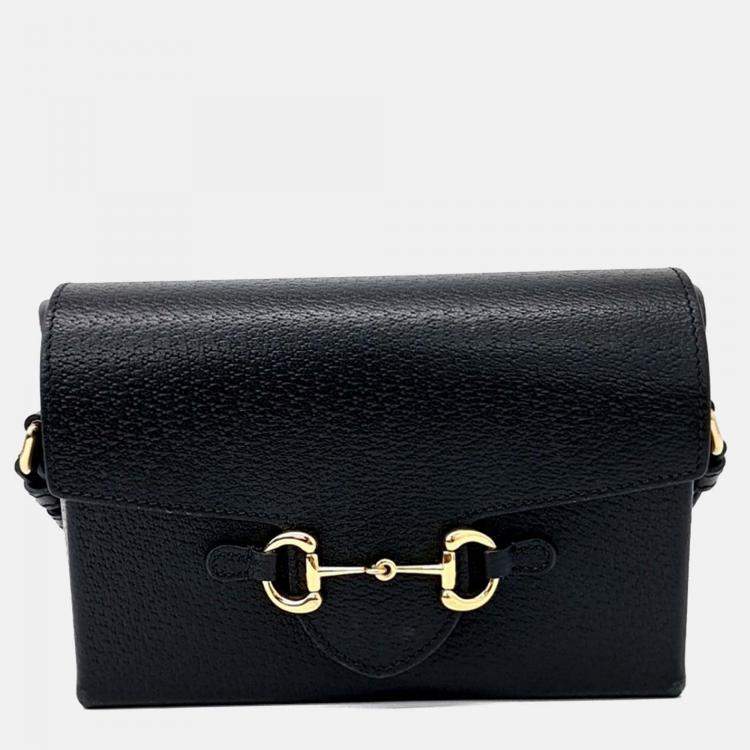 Gucci Black Leather Horsebit 1955 Flap Shoulder Bag