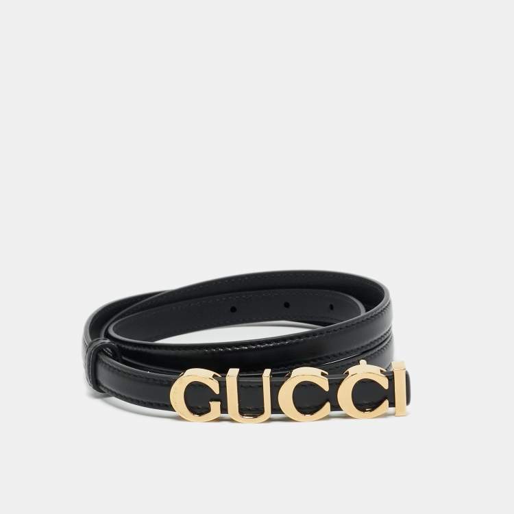 Gucci Black Leather Logo Slim Waist Belt 95CM