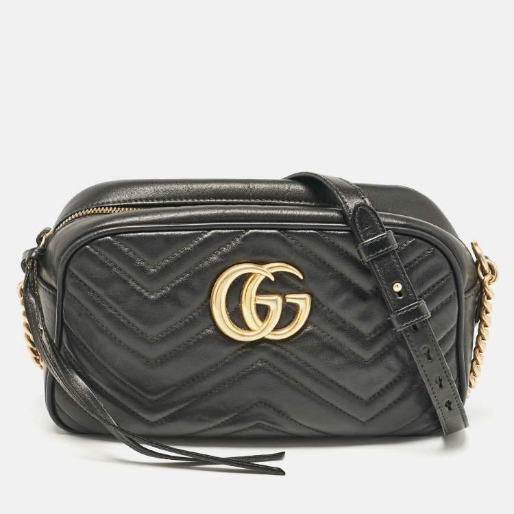 Gucci Black Matelassé Leather Small GG Marmont Shoulder Bag