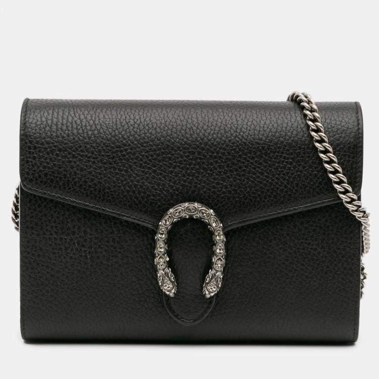 Pre Owned Gucci Black Mini Leather Dionysus Wallet on Chain