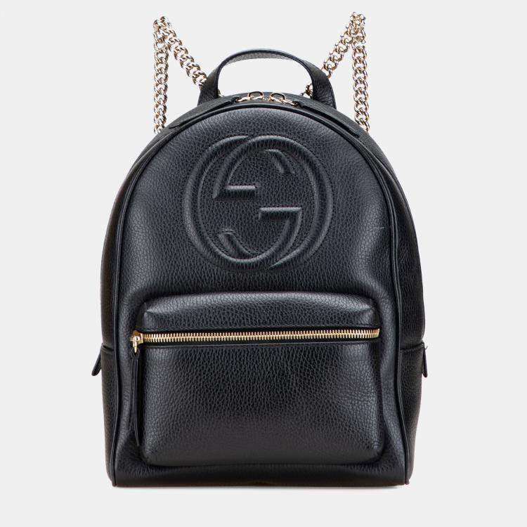 Gucci Black Pebbled Calfskin Soho Chain Backpack