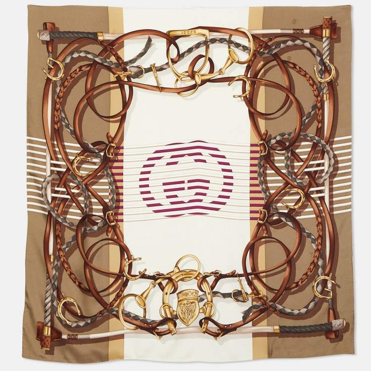 Pre Owned Gucci Brown GG Stirrup Print Silk Scarf
