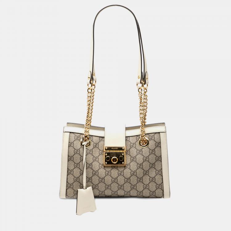 Gucci Brown Small GG Supreme Padlock Tote