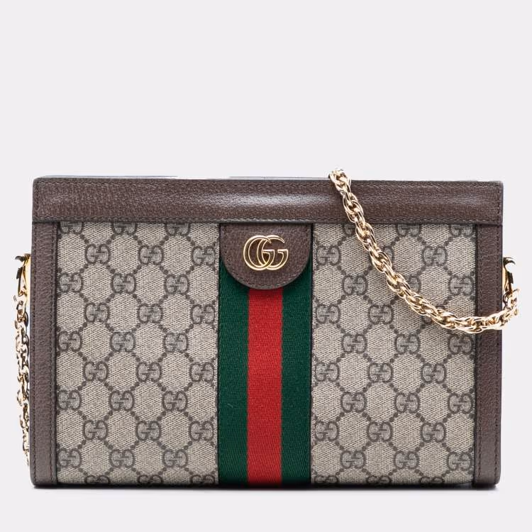 Gucci Brown Small GG Supreme Web Ophidia Chain Crossbody
