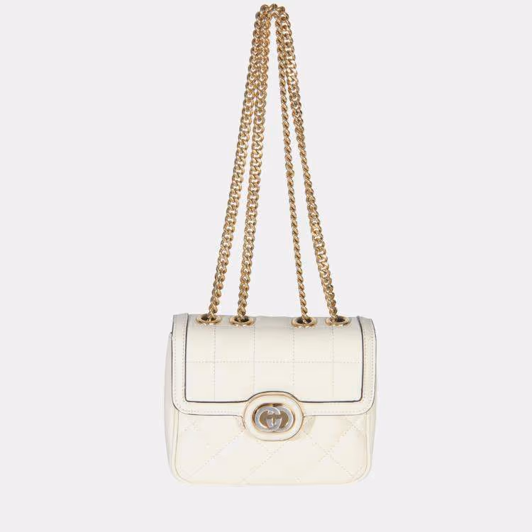Gucci Deco Mini White Quilted Calfskin Leather Chain Bag