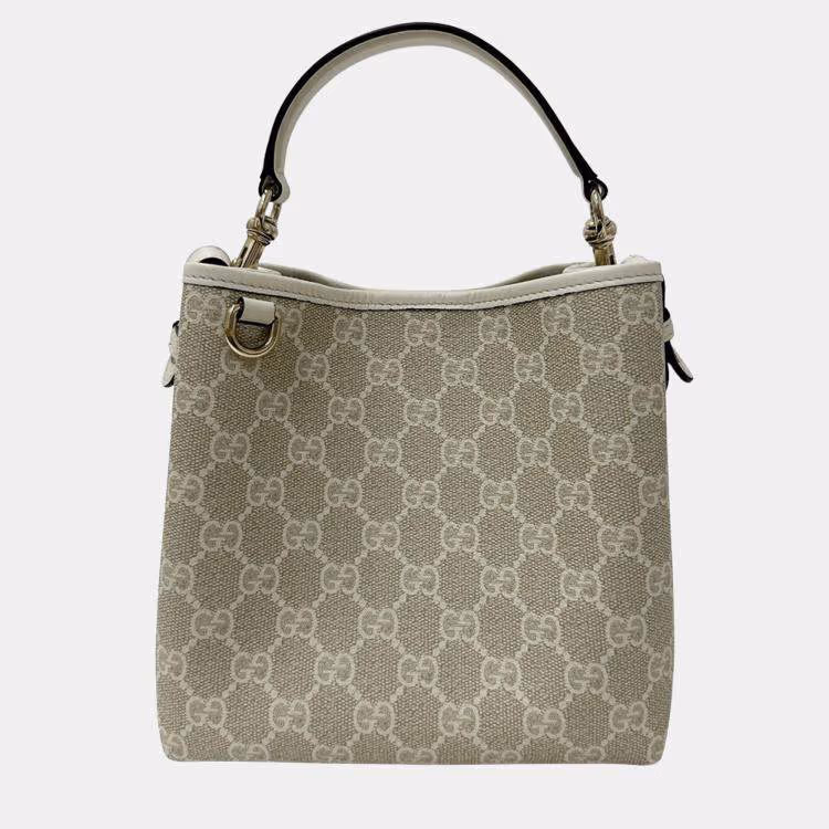 Pre Owned Gucci GG Emblem Small White Calfskin Leather Shoulder Bag