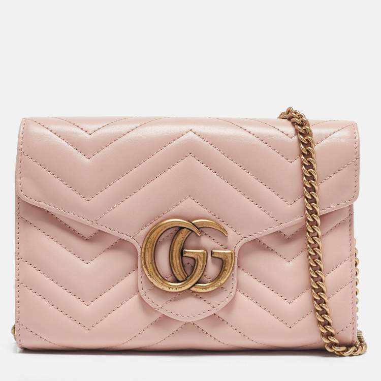 Gucci Light Pink Matelassé Leather GG Marmont Wallet on Chain