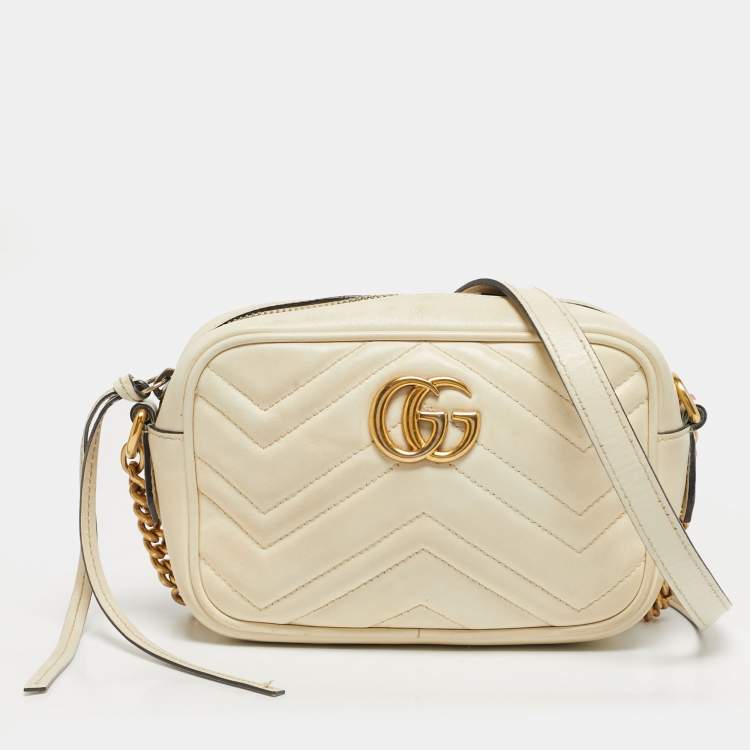 Gucci Off White Matelassé Leather Mini GG Marmont Camera Bag