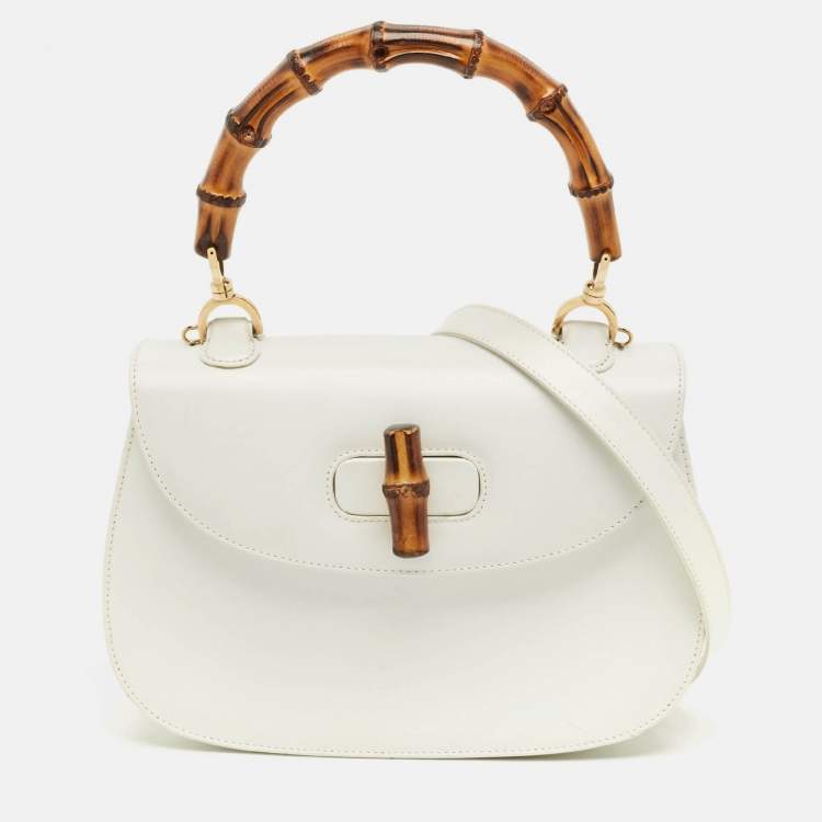 Gucci White Leather Centennial Bamboo Top Handle Bag