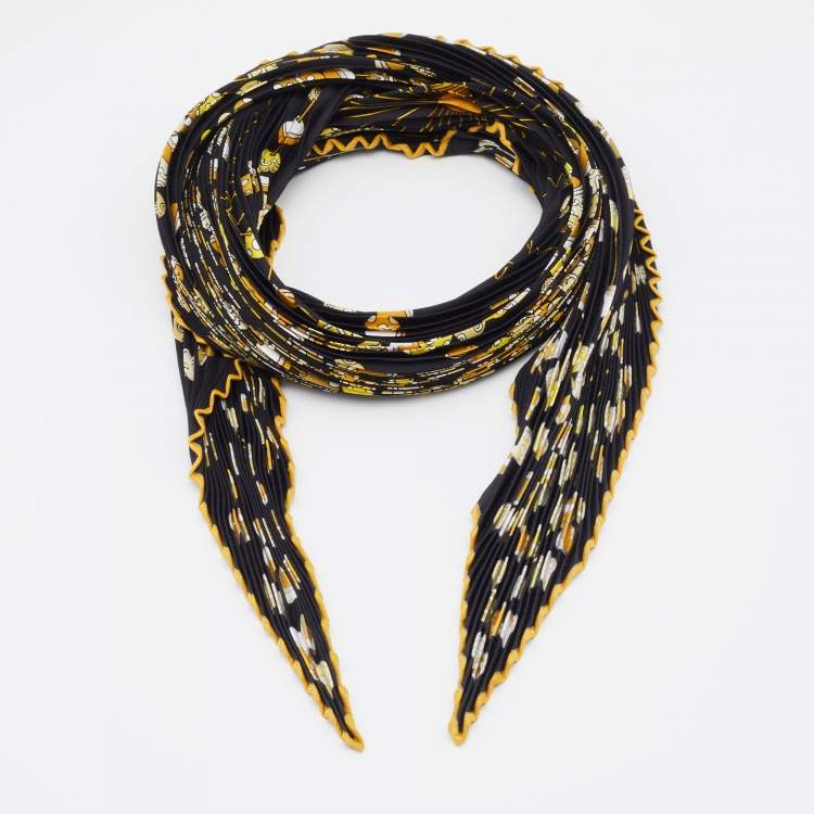 Pre Owned Hermès Black Dancing Pearls Silk Plisse Scarf