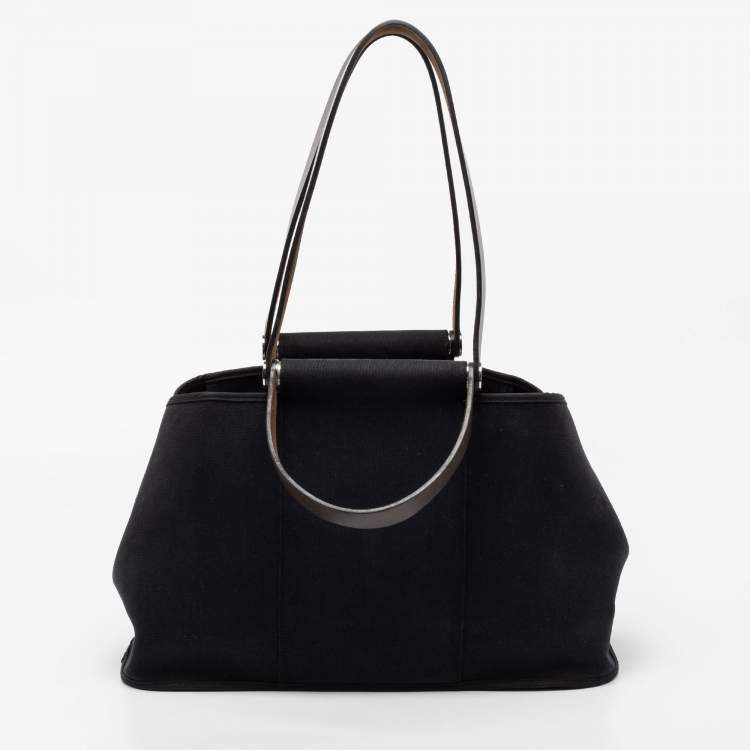Hermès Black/Chocolat Canvas and Leather Cabag Elan Tote