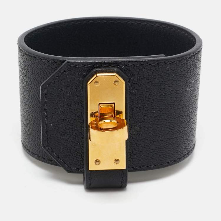 Hermès Kelly Twist Black Leather Gold Plated Large Model Bracelet