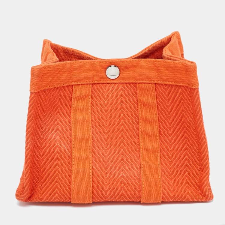 Pre Owned Hermès Orange Toile Chevron Garden Party Pouch