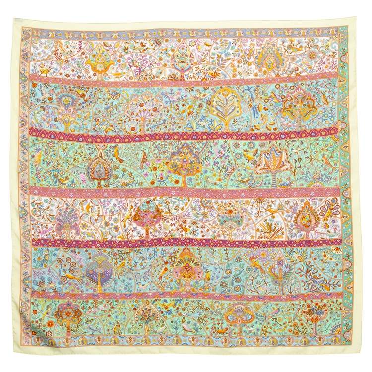 Pre Owned Hermès Pale Yellow Au Pays Des Oiseaux - Fleurs Silk Scarf