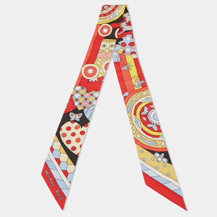 Pre Owned Hermès Red/Yellow Silk Les Murmures de la Foret Silk Twilly