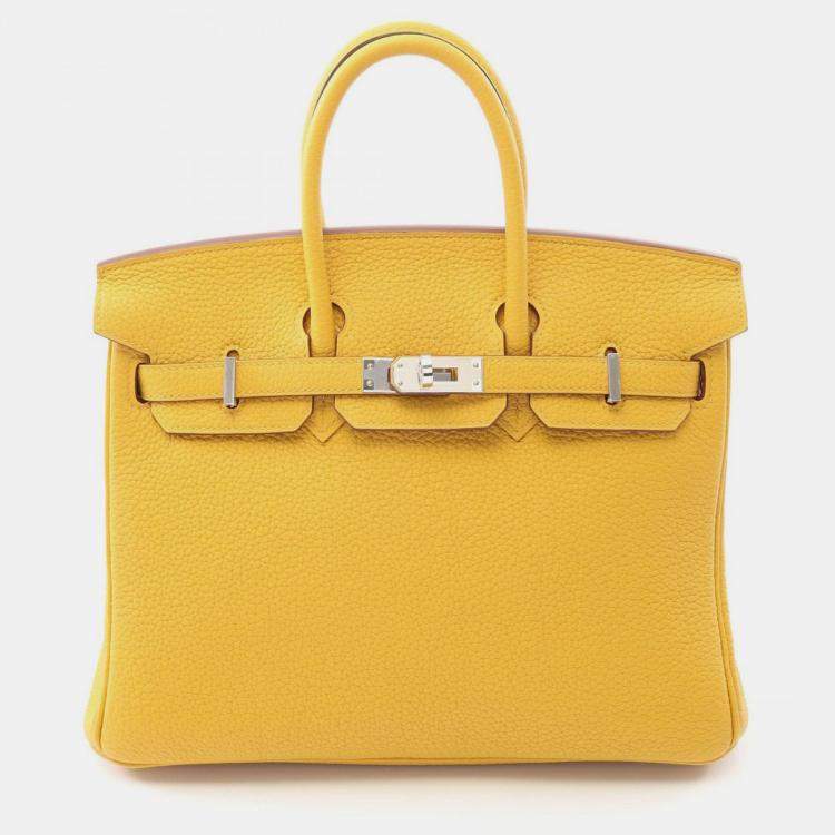 Pre Owned Hermes Birkin 25 Jaune Ambre Togo Leather Tote Bag