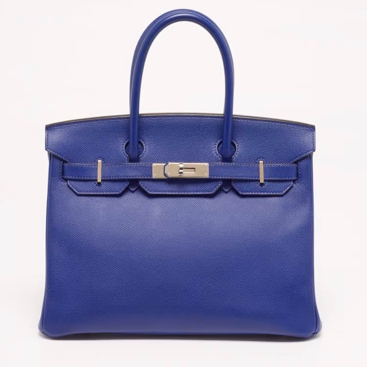 Pre Owned Hermes Birkin 30 Palladium Finish Bleu Electrique Epsom Leather Tote