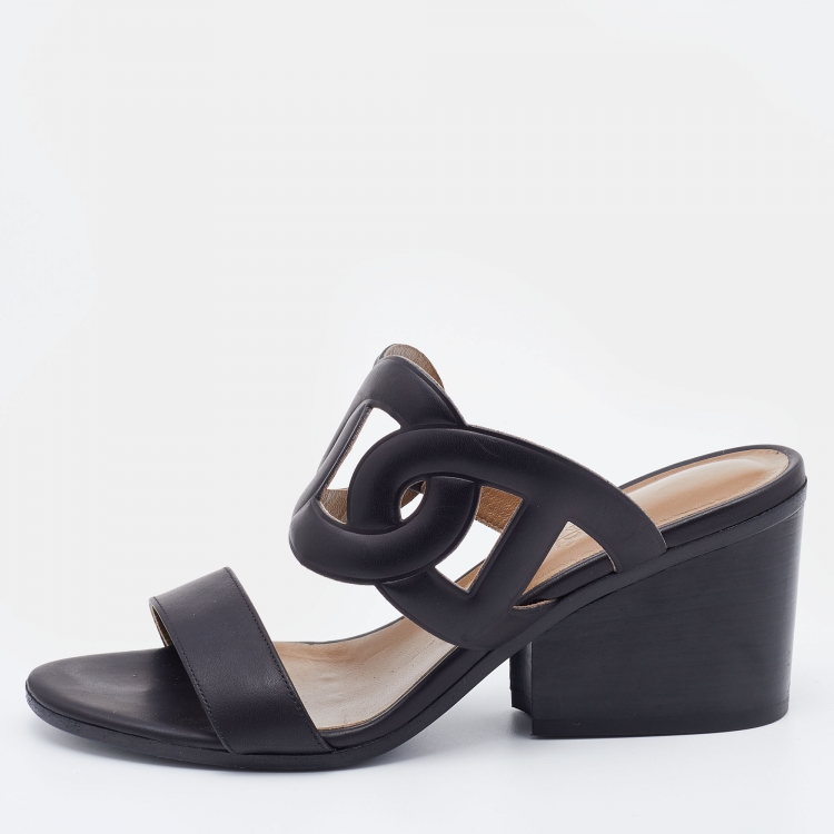 Pre Owned Hermes Black Leather Bikini Slide Sandals Size 36
