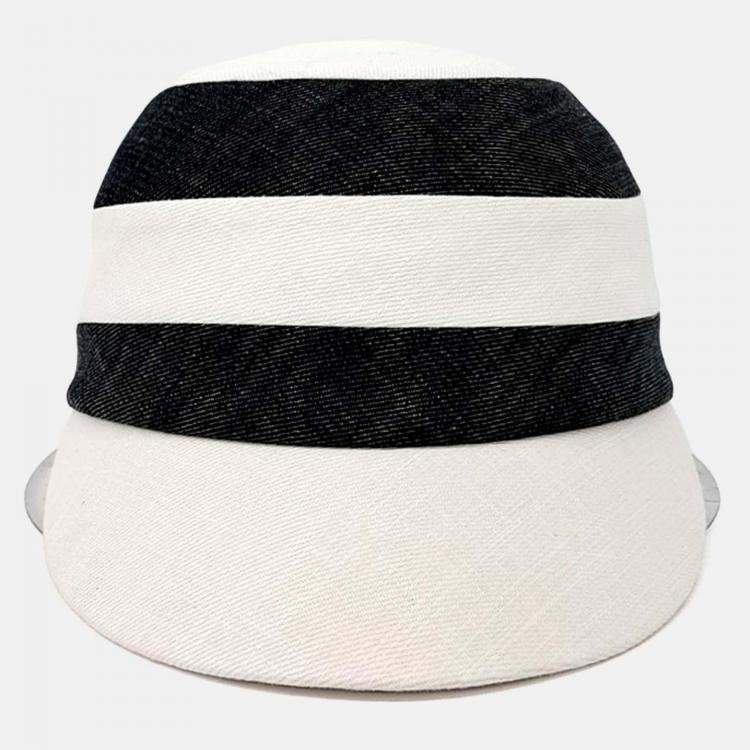Hermes Black,/White Cotton Linen Hat