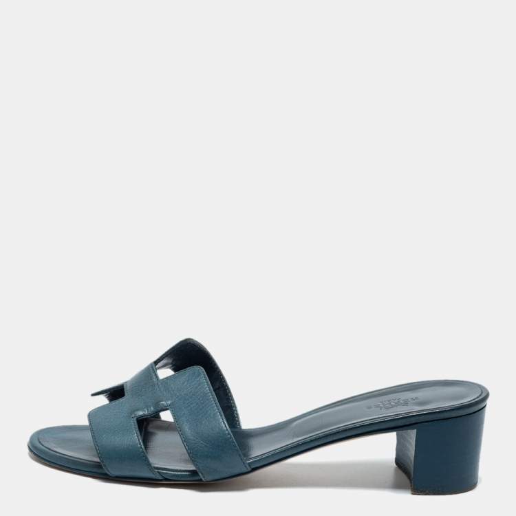 Pre Owned Hermes Blue Leather Oasis Sandals Size 39