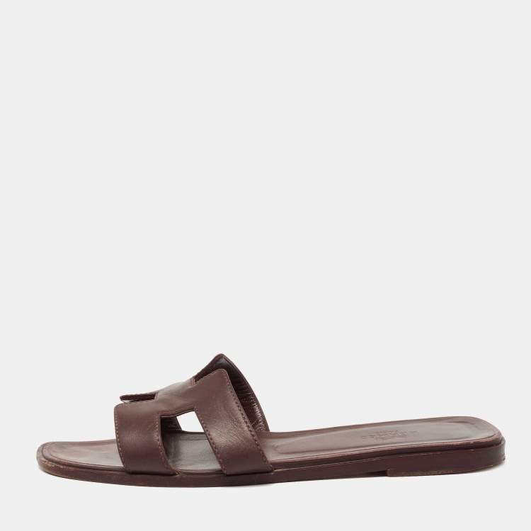Pre Owned Hermes Burgundy Leather Oran Sandals Size 36.5