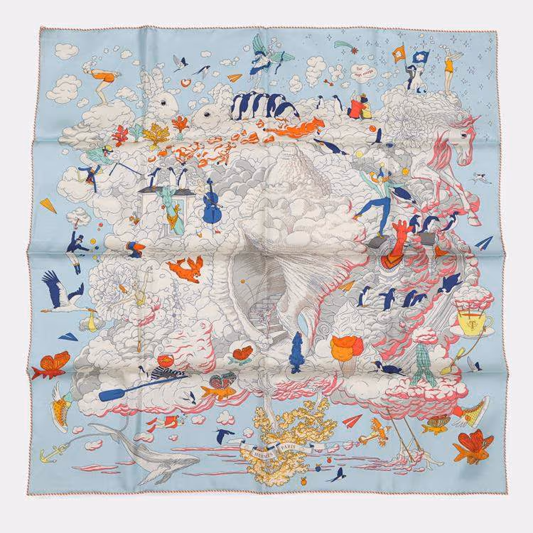 Hermes Carre My Cloud Size 90 Blue Gacier/Grease/Multicolor Silk100%
