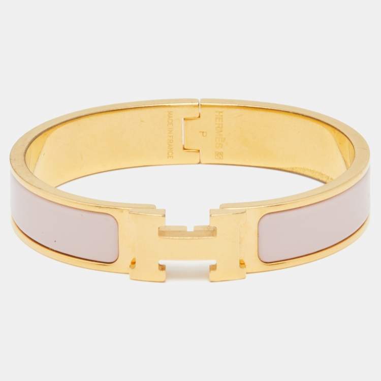 Hermes Clic H Nude Pink Enamel Gold Plated Narrow Bracelet PM