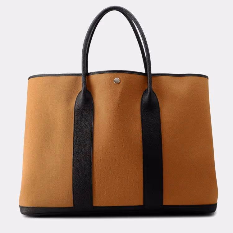 Hermes Garden Party Dune/Black Toile H Negonda Leather Size Gm