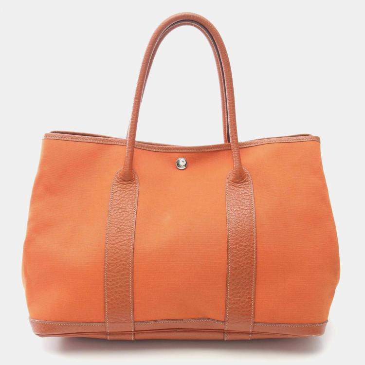 Pre Owned Hermes Garden Party PM Toile Officier Potiron Orange Leather  Tote Bag