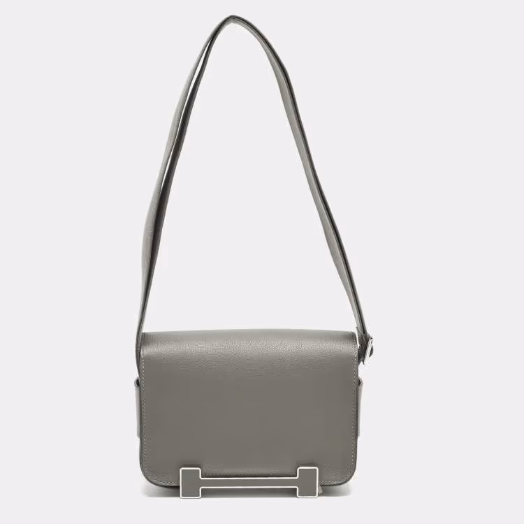 Pre Owned Hermes Geta Gris Meyer Evercolor Leather Shoulder Bag