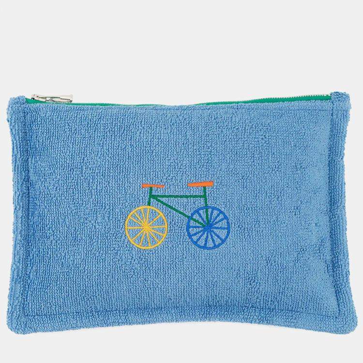 Hermes Les Cabans Flat Pouch Blue Cotton PM