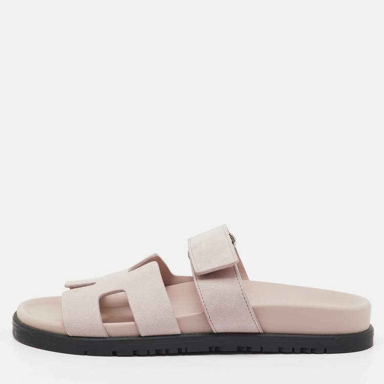 Hermes Pastel Pink Suede Chypre Sandals Size 36