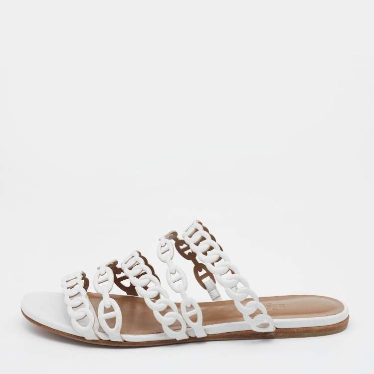 Hermes White Leather Thalassa Flat Slide Sandals Size 37.5