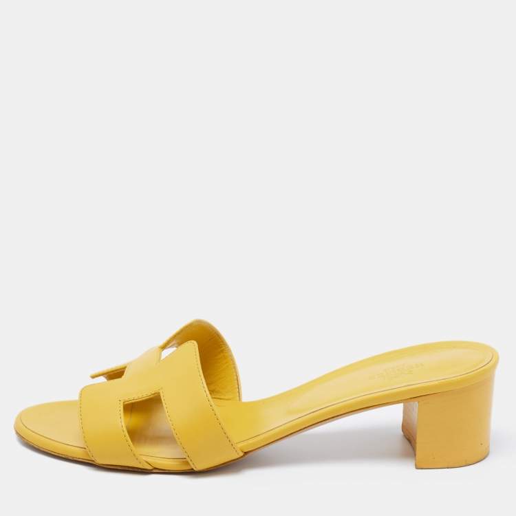 Hermes Yellow Leather Oasis Slide Sandals Size 41