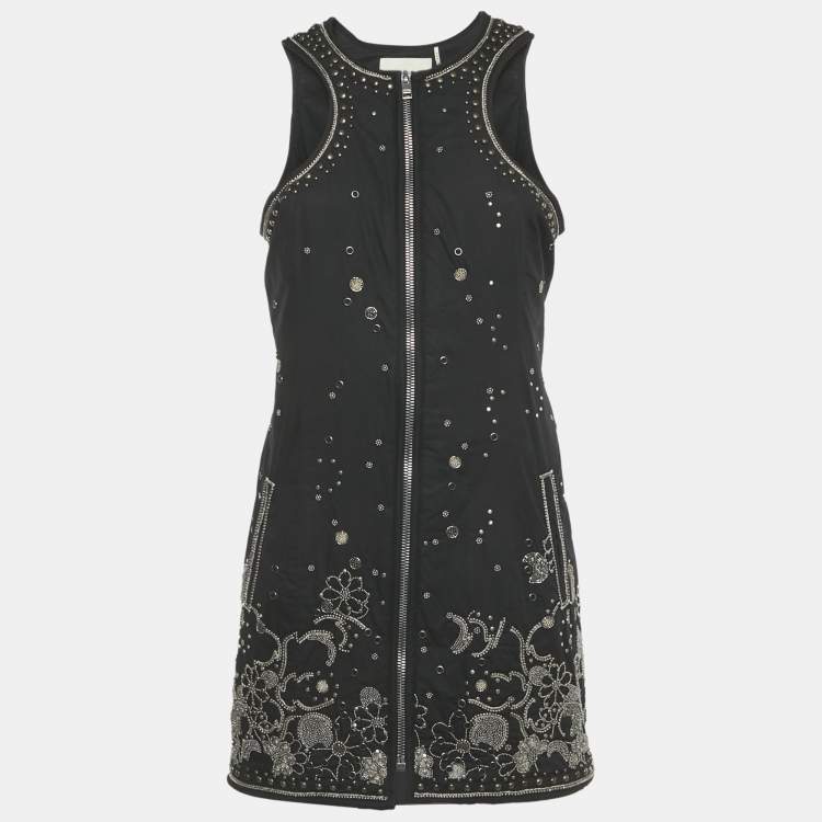 Isabel Marant Black Floral Embellished Cotton Zip Front Mini Dress M