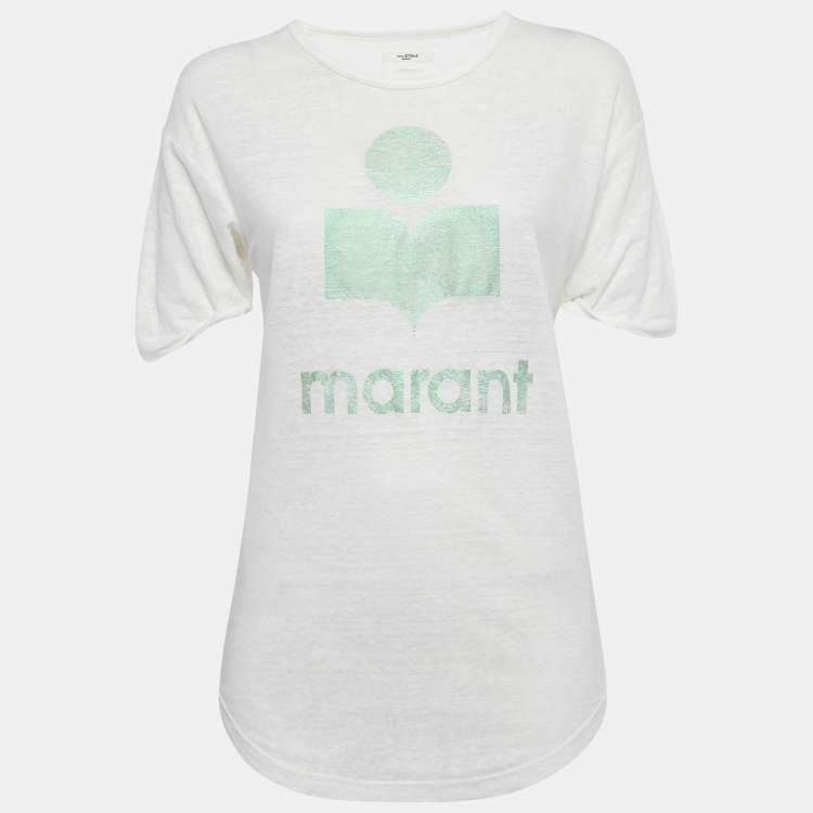 Pre Owned Isabel Marant Etoile White Foil Logo Print Linen Jersey Top S