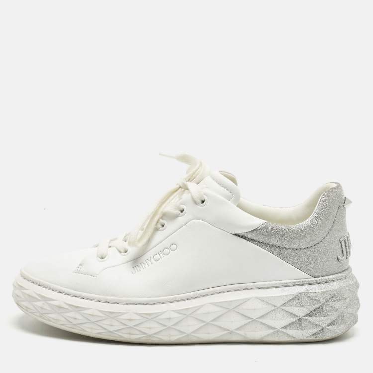 Pre Owned Jimmy Choo White/Silver Leather Diamond Light Maxi Sneakers Size 39