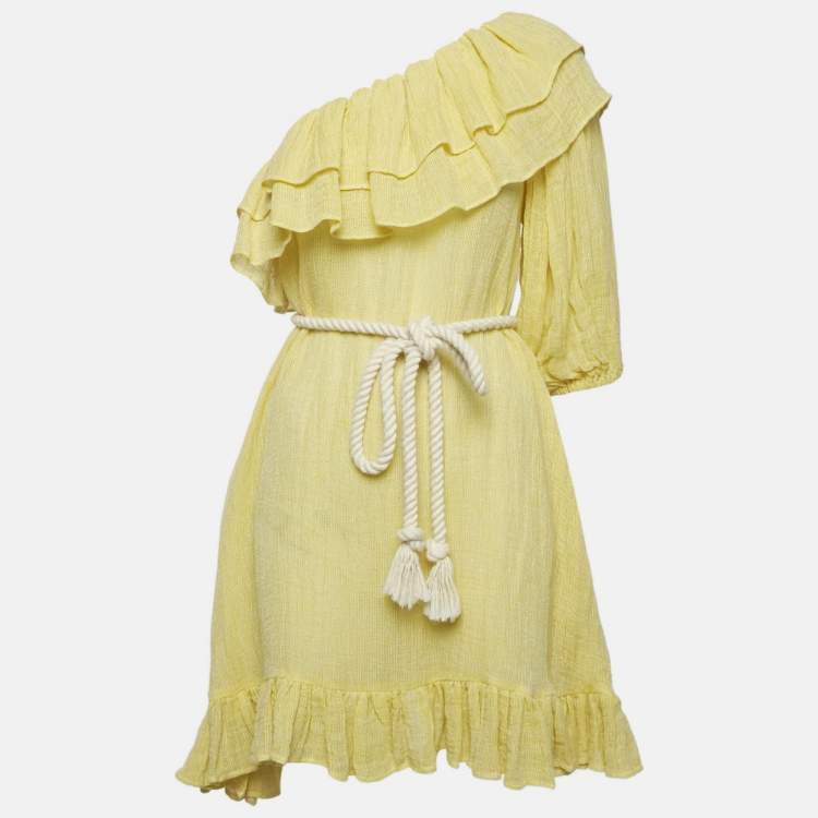 Pre Owned Lisa Marie Fernandez Yellow Gauze Linen Belted Mini Dress S
