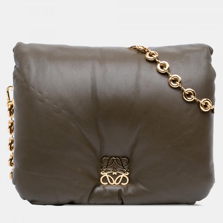 Pre Owned Loewe Green Shiny Lambskin Goya Puffer Bag