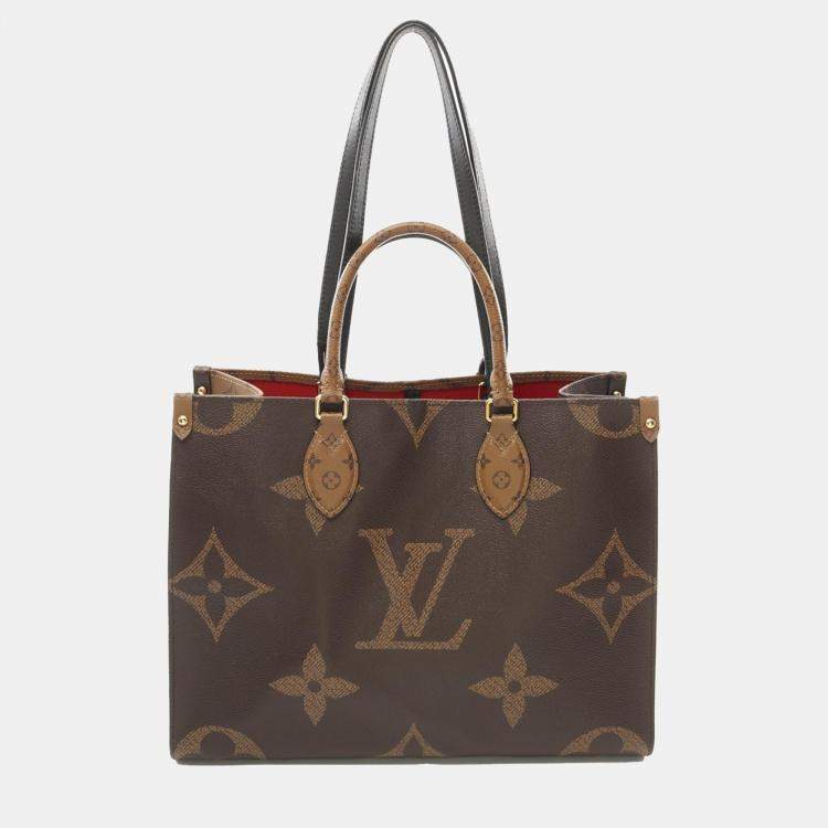 Pre Owned Louis Vuitton Beige and Brown Monogram Giant Reverse Canvas OnTheGo MM Tote Bag