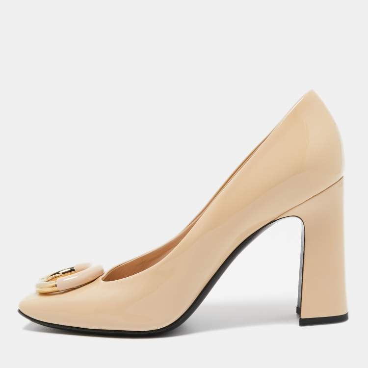 Louis Vuitton Beige Patent Leather Madeleine Block Heel Pumps Size 39.5