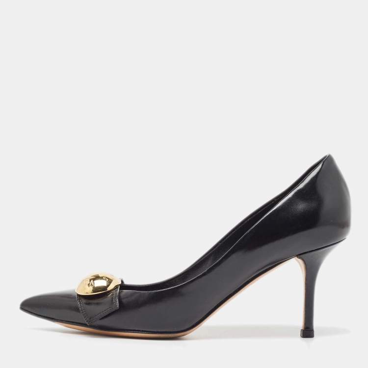 Louis Vuitton Black Leather Embellished Pointed Toe Pumps Size 37