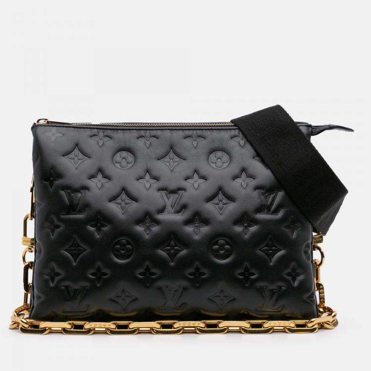 Louis Vuitton Black Monogram Embossed Puffy Lambskin Coussin PM