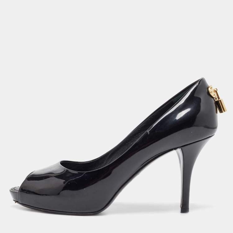 Pre Owned Louis Vuitton Black Patent Leather Oh Really! Peep Toe Pumps Size 37