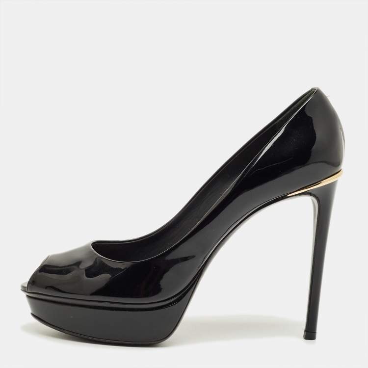 Louis Vuitton Black Patent Leather Oh Really! Platform Peep Toe Pumps Size 38.5