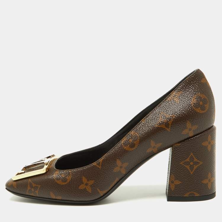 Pre Owned Louis Vuitton Brown Monogram Canvas Madeleine Pumps Size 38